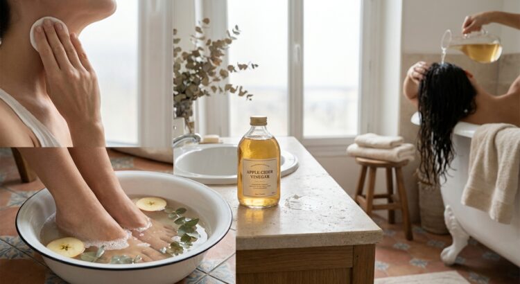 Dans bien des cuisines françaises, la bouteille de vinaigre de cidre se cache près de l’huile d’olive sans que l’on imagine tout ce qu’elle peut faire pour la beauté. Quand l’hiver laisse une peau qui tiraille, des cheveux ternes et des pieds enfermés dans des chaussures épaisses, ce liquide ambré devient un allié discret pour tout rééquilibrer.