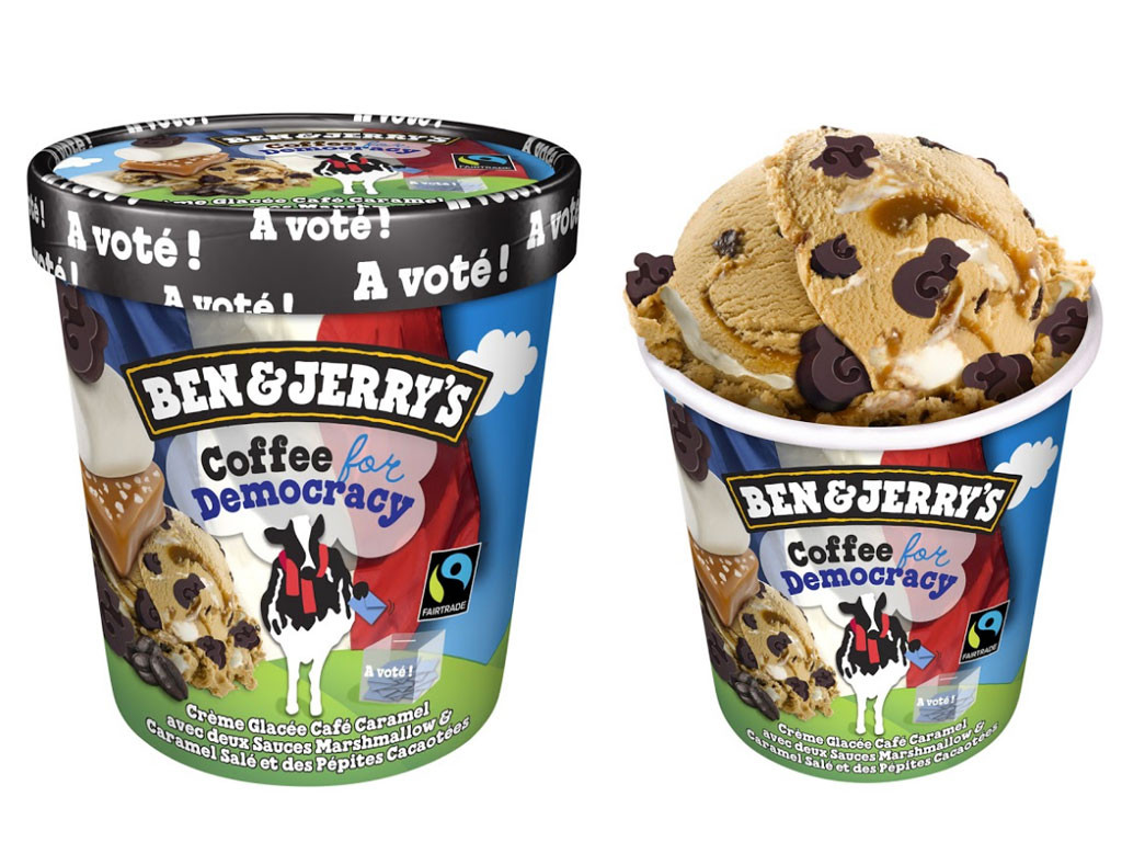 Mais comme souvent avec Ben & Jerry’s, il y a un message derrière cette nouveauté. Et plus précisément, un message politique ! Eh oui, le nom du parfum n’est pas « Coffee for Democracy (Café pour la démocratie, ndlr) pour rien. La marque annonce la couleur : « Ce nouveau candidat va donner du grain à moudre aux plus gourmands ». Parfait pour coller à l’actu de la campagne présidentielle, mais aussi pour relancer le mouvement « Aux glaces citoyens », qui a pour objectif de rappeler aux Français à quel point il est essentiel de voter. Et plus particulièrement, de sensibiliser les jeunes au pouvoir du vote et de la démocratie. Une glace d’intérêt général, donc !