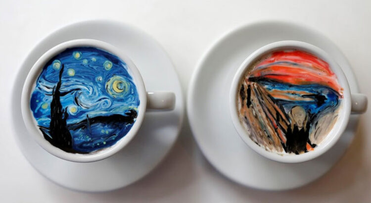 Le Cri de Munsch, ou encore La Nuit Etoilée de Van Gogh… Rien ne fait peur à Lee Kang-bin. Loin d’être un serveur comme les autres, il porte une attention toute particulière à chacune des tasses qu’il sert. A l’aide d’une crème de lait épaisse et de colorants alimentaires, il est capable de reproduire plusieurs grands classiques de la peinture.