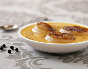 Noix de Saint-Jacques sautées sur velouté de potiron