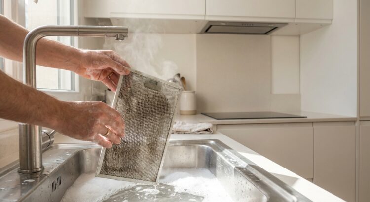 Dans une cuisine, la priorité reste les filtres à graisse métalliques, visibles sous l’appareil. Un bain d’eau chaude avec du liquide vaisselle dégraissant, 30 minutes de trempage, puis brossage et rinçage suffisent. Un lavage tous les 1 à 3 mois limite déjà nettement la graisse.