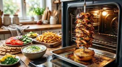- 🔥 La recette repose sur une marinade au yaourt grec, une broche verticale maison et une cuisson au four qui évitent le poulet sec.
