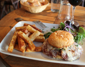 Le burger : italien (les origines du chef, François, ndlr). Boeuf de l’Aubrac cuit à point à la perfection, bresaola, taleggio, oignons rouges crus, admirable sauce tartare (ketchup, sauce Worcester, cornichons, câpres). Ca fait bang !