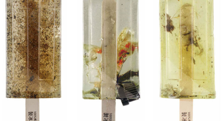Vu de loin, ils paraissent plutôt tentants, ces sorbets aux fruits entiers… Pourtant si on y regarde de plus près, on s’aperçoit que les morceaux ne sont pas si appétissants que ça. Et le nom du projet, qui associe démarche artistique et sensibilisation environnementale, finit de nous inquiéter : « Polluted Water Popsicles » : bâtonnets de glace à l ‘eau polluée.