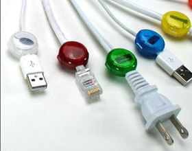 Ces petits points de couleur se clipsent sur chaque fil et permettent, grâce au pictogramme imprimé dessus, de reconnaître rapidement et facilement à quel périphérique on a affaire.