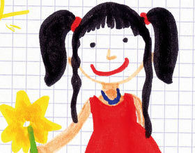 Tante Alice lui a offert un cahier bleu, tout neuf, avec un encrier rouge, ça tombe bien, c’est la préférée couleur de Nanou, le rouge.