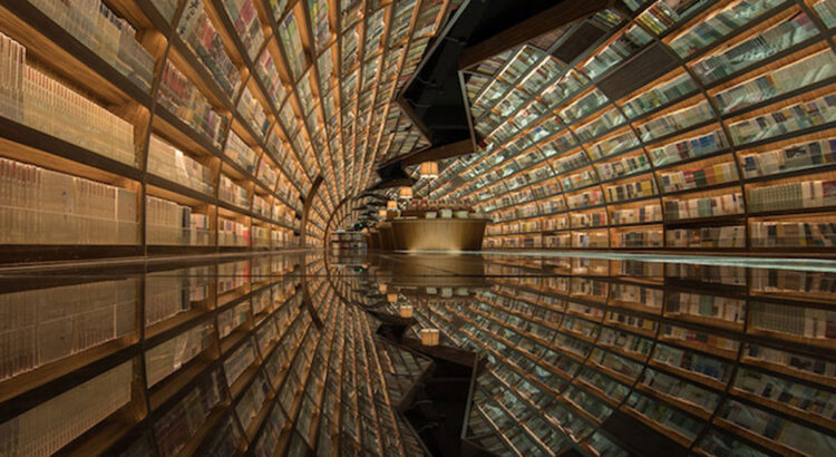 Elle s’appelle Yangzhou Zhongshuge et se situe en Chine, à Zhen Yuan. Des jeux de miroirs, placés au sol, au plafond ou sur des parois verticales, renvoient habilement des reflets qui créent une illusion de tunnel infini et de dimensions fantastiques… Le mobilier met également en valeur la beauté du lieu. Quelle étrange impression se doit être d’aller acheter un livre dans cette librairie étonnante.