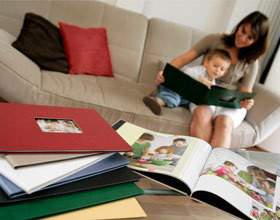 Je choisis au hasard le site www.photoweb.fr. Les indications sont très simples. Il suffit de télécharger ses images et de choisir l’album : souple, très classe façon cuir, à spirales, etc.On peut même opter pour un thème : naissance, vacances, fête… Attention à ne pas tomber dans le kitch tout de même !