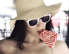 Cette femme-enfant aime également se mettre en scène tout en légèreté. On la découvre tantôt rêveuse, tantôt enfantine, rigolote, tout sourire avec sa paire de lunettes de geekette ou sa sucrerie en bouche.