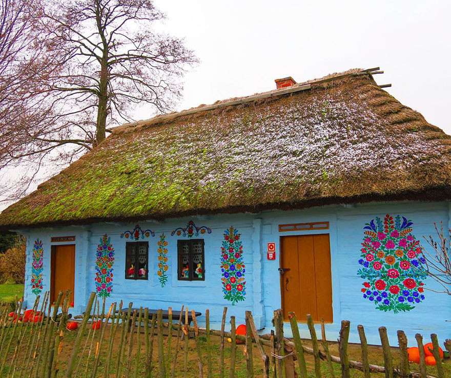Dans le Sud-Ouest de la Pologne, il existe un village qui ressemble à un village de poupées… Chacune de ses maisons est décorée de motifs floraux, peints à la main par ses habitants.