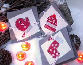Proposé ici avec des motifs d'hiver, ce principe de réalisation de carte peut se décliner au gré de vos envies.