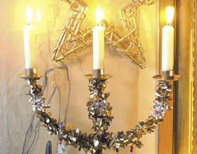 1/ Enroulez une guirlande de buis artificielle autour du chandelier.