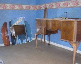 J'avais envie d'une 'coiffeuse perso' pour ma chambre. J'en ai déniché une dans une trocante en bois vernis...