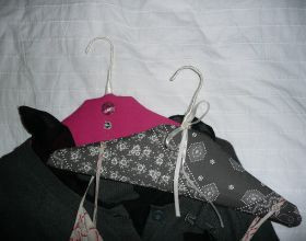 Décorer le ‘noeud’ du cintre d’une cocarde en ruban, de quelques boutons, perles… Soyez inventives !