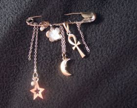 – épingle à nourrice– fil de cuivre- breloque- pince coupante