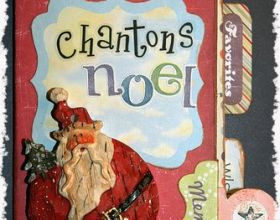 Pour décorer les pages intérieures, j’ai essentiellement utilisé des formes pré-découpées (die-cuts) et des autocollants assortis. J’ai également découpé des sapins, du houx et des lettres avec une machine à découper dans les chutes de papiers. Les textes sont réalisés avec des autocollants et des transferts.