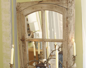 8/ Posez les vitres en laissant à l’arrière les gabarits afin de ne pas abîmer le dos du miroir avec les petits clous et votre marteau. Jointez éventuellement avec de la colle.