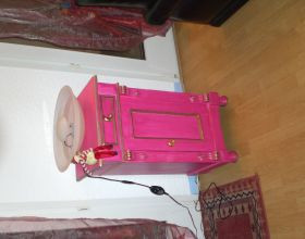 Je commence par réparer le meuble s’il est abîmé, ensuite je le ponce, lui mets un traitement anti vers, une 1ère couche d’apret et enfin la couleur suivant mon inspiration.