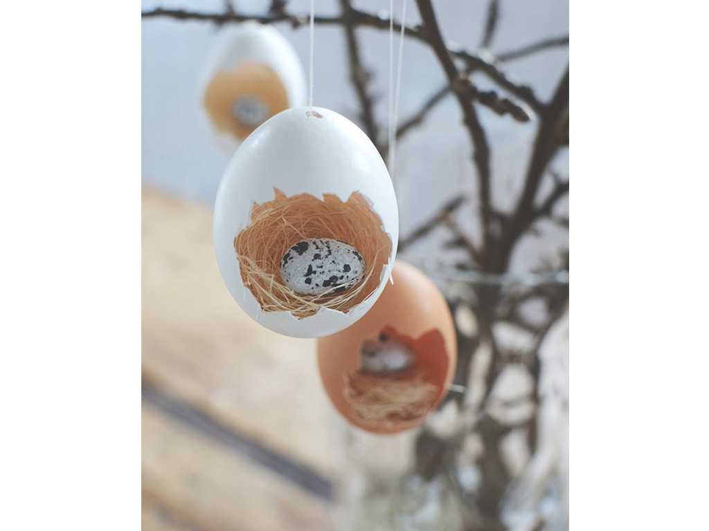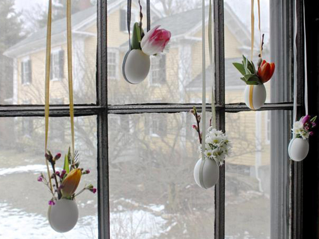 Les œufs suspendus devant la fenêtre peuvent recevoir les premières tiges fleuries et annoncent à tous les beaux jours à venir !