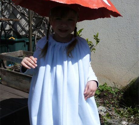 Si vous aimez mettre la main à la pâte, voici un charmant champignon, vraiment irrésistible. En recouvrant un parapluie de papier mâché, vous obtiendrez le chapeau du champignon, à peindre en rouge et blanc. Il tiendra sur la tête à l’aide d’un tube en carton. Un vêtement blanc terminera le costume, si vous n’avez pas le temps de confectionner spécialement un pied au champignon. Un petit air champêtre pour ce déguisement !