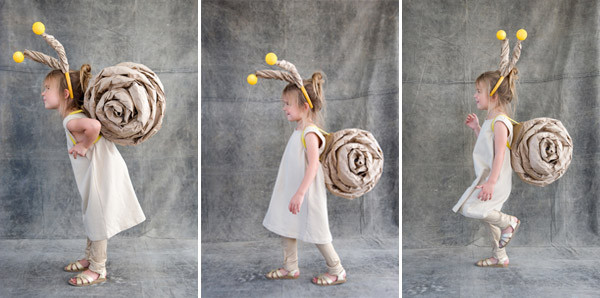 Comme dans la comptine, petit escargot porte sa maisonnette sur son dos. Rien de plus facile à réaliser ! Pour ce modèle, il suffit d’avoir du papier kraft, un peu de carton, de quoi faire les sangles de la coquille, un serre-tête et des petites balles pour figurer les extrémités des antennes. Le résultat est du plus bel effet !