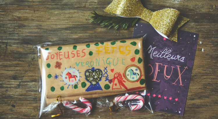 C’est le moment de mettre à contribution les bambins ! Il vous suffit d’emballer une plaquette de chocolat d’un papier clair et uni. Les enfants, eux, se chargeront de décorer cet emballage aux couleurs de Noël. Vous pouvez aussi choisir de mettre un message plus personnel ou une citation humoristique. Les sites de DIY proposent un grand nombre de modèles parmi lesquels se trouve sans aucun doute votre bonheur. source