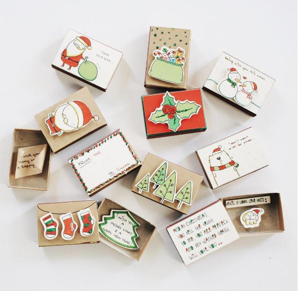 Fini d'écrire le nom de Julie ou de tata Monique sur l'étiquette de leur paquet cadeau ! Cette année, on rajoute ces délicates boîtes d'allumettes, transformée pour l'occasion, qui feront autant plaisir que le cadeau lui-même ! (Source)