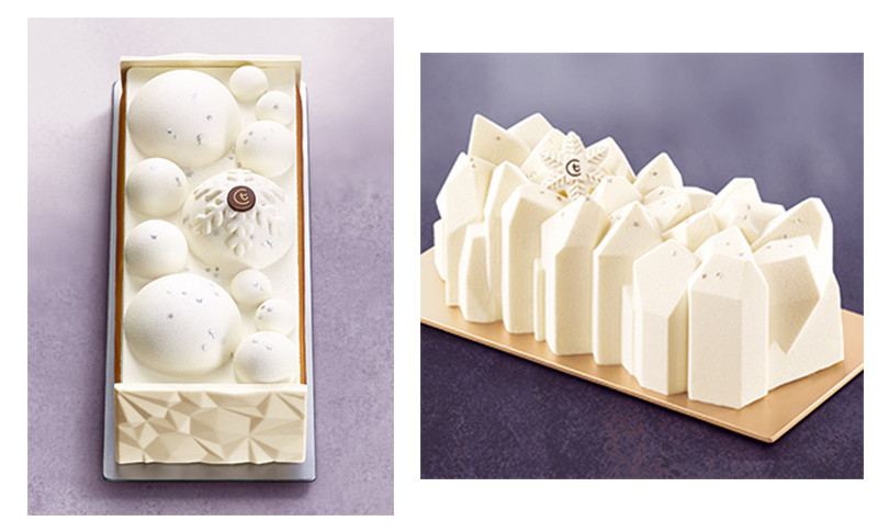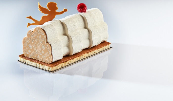 Le catalogue du glacier présente deux bûches au look immaculé, l’une glacée et l’autre pâtissière. La bûche « Instant Féerique » est surmontée d’élégantes boules de neige parsemées d’étoiles argentées. Des crèmes glacées façon chantilly et confiture de lait avec des morceaux de noisette sont acidulées d’une sauce à l’abricot. En forme de cristaux, la bûche « Rêve Polaire » allie les goûts de la noisette et du kalamansi , un petit fruit d’Asie à l’odeur de mandarine et au goût d’orange amère. (13,90 € et 15,90 € pour 8 personnes)