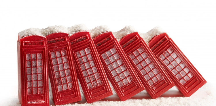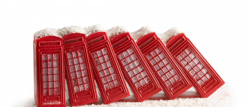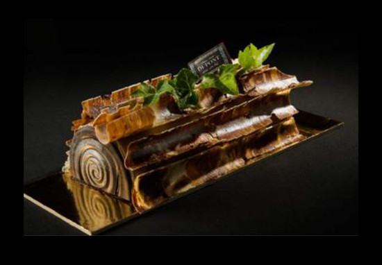 Pour fêter l’ouverture de son restaurant londonien, Anne-Sophie Pic a imaginé une bûche so british du nom de « Pic loves London ». Les goûts et parfums de la cerise griotte, de la feuille de cannelier, de la bière et du miel hydromel donne vie à ce décor tout en… cabines téléphoniques londoniennes ! ( 54 € pour 6/8 personnes)