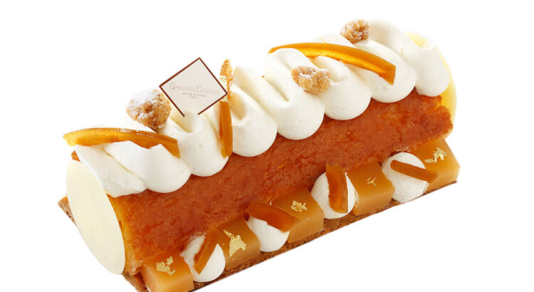 Le pâtissier Hugues Pouget profite d’une rencontre exceptionnelle avec le moine bouddhiste Matthieu Ricard pour relever son défi et proposer deux bûches vegan. La première, du nom de « Bûche Maitri » (Bonté), est composée d’un biscuit au sésame blond caramélisé, de mangue cuite aux épices façon Tatin et d’une compotée de mangue et de passion aux épices. La seconde est un gâteau glacé, nommé « Bûche Karuna » (Compassion), aux parfums de chocolat, de marrons glacés et de lait de riz. (77 € pour 5/6 personnes)