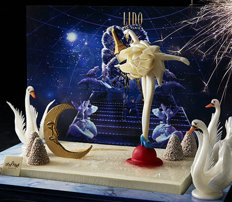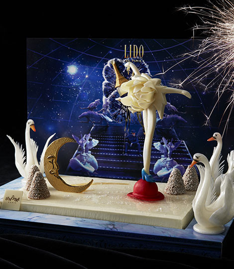 La bûche « Merveilles » de Guy Krenzer se veut une scène à part entière. Ses différents éléments s’inspirent du spectacle « Paris Merveilles » de Franco Dragone pour le Lido. Sur un entremets blanc se côtoient une danseuse de chocolat blanc, des cygnes en sucre tiré, un croissant de lune en chocolat noir. Orange et amandes seront les saveurs dominantes de cette gourmandise spectaculaire. On trouvera cette série limitée du 10 au 24 décembre. (130 € pour 10 personnes)
