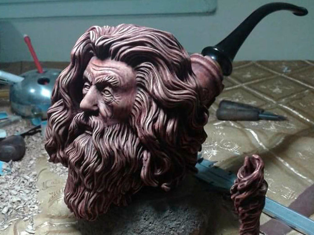 Motivé par ses personnages préférés, le jeune homme taille le bois depuis ses 18 ans. Ses pipes préférées sont celles qu’il réalise pour les héros du Seigneur des anneaux, qui l’inspirent beaucoup.