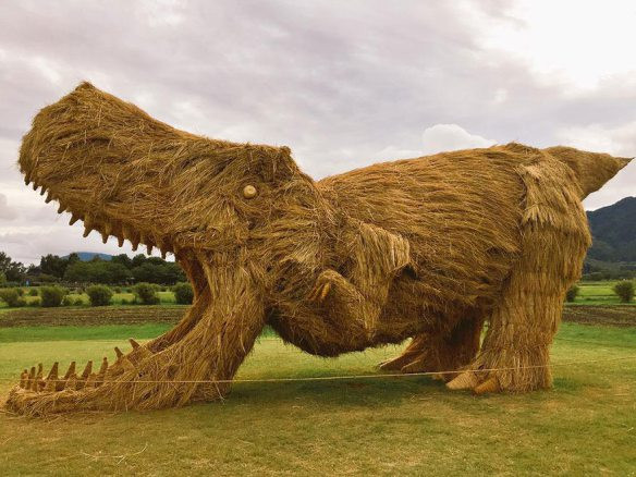 L'animal finalisé est impressionnant ! D'ailleurs, l'année où il a été créé (2015), les images de dinosaure en paille de riz sont devenues virales.