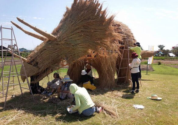 Tous les ans, fin août, au Japon, à Niigata au nord de Tokyo, on peut se rendre au festival Wara Art Matsuri, qui célèbre la récolte du riz. Là-bas, des étudiants en art se retrouvent pour magnifier ce matériau simple qu’est la paille de riz et se lancent dans d’immenses sculptures.