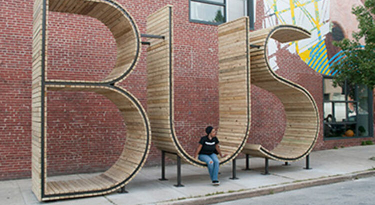 Qu’il est sympa, ce banc-abribus des rues de Baltimore ! Avec ses lettres de bois, il apporte une touche de design naturel dans la ville.