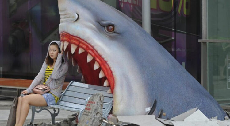 Il faut un certain sang froid pour prendre place sur ce banc de Bangkok. Tout droit sorti de nos pires cauchemars, ce requin semble n’en faire qu’une bouchée !