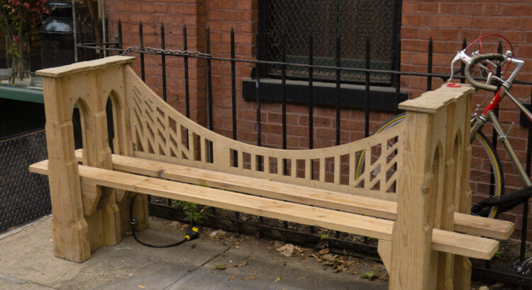 Ce banc de bois est un hommage au célèbre pont de la ville, le pont de Brooklyn.