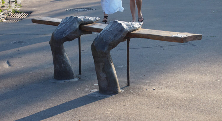 Imaginez un peu la surprise du passant devant ces deux bras surgis du bitume pour soutenir l’assise de ce banc !