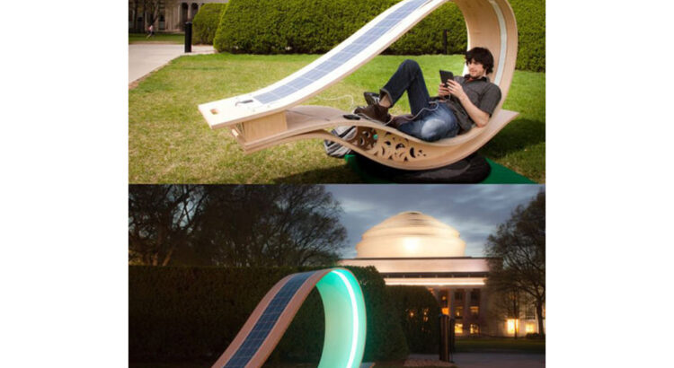 Les étudiants de la prestigieuse MIT (Massachussetts Institute of Technology) ont mis au point ce siège tout à la fois confortable et intelligent. Le jour, il s’oriente sous un angle optimal pour que ses panneaux solaires reçoivent le rayonnement solaire maximal. Cela permet de se reposer à l’extérieur tout en chargeant ses appareils électroniques. La nuit, si on le souhaite, le fauteuil restitue une douce lumière.