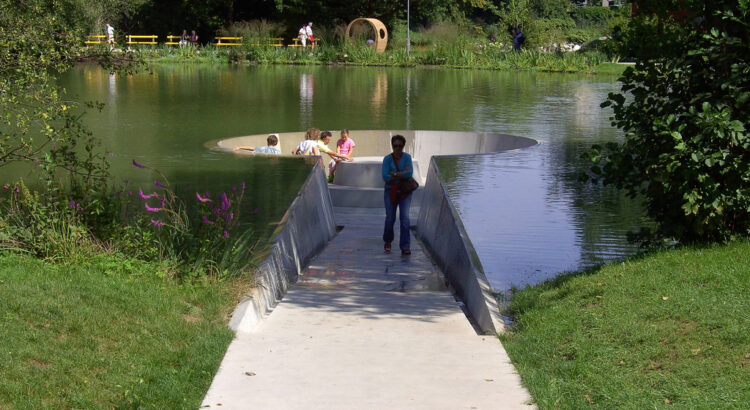Jeppe Hein a installé dans la ville une série de bancs appelée Modified Social Benches. Celui-ci est représentatif du travail de l’artiste.