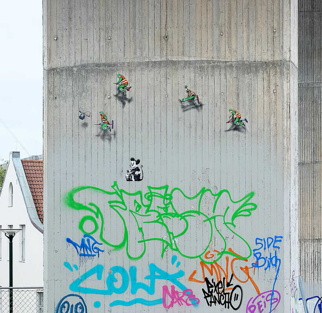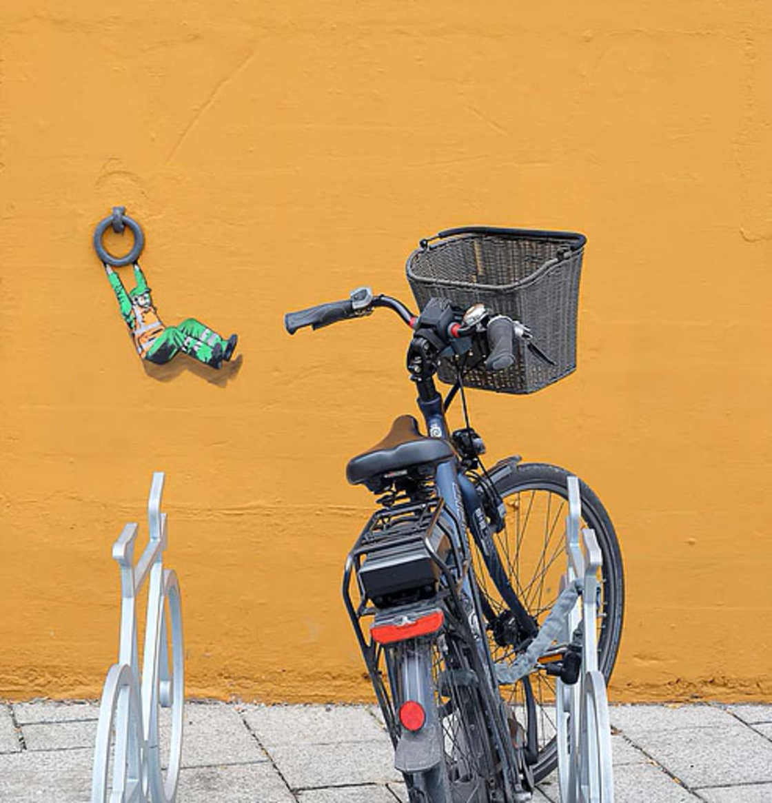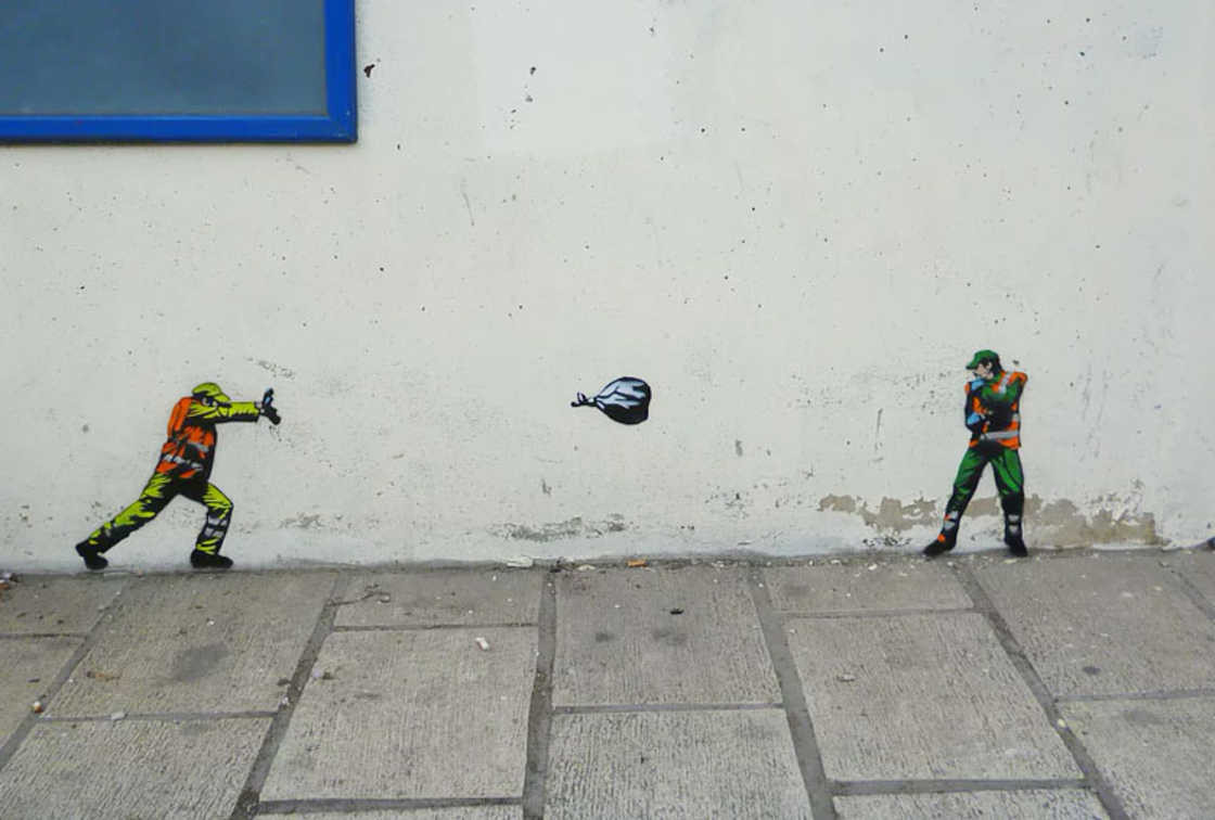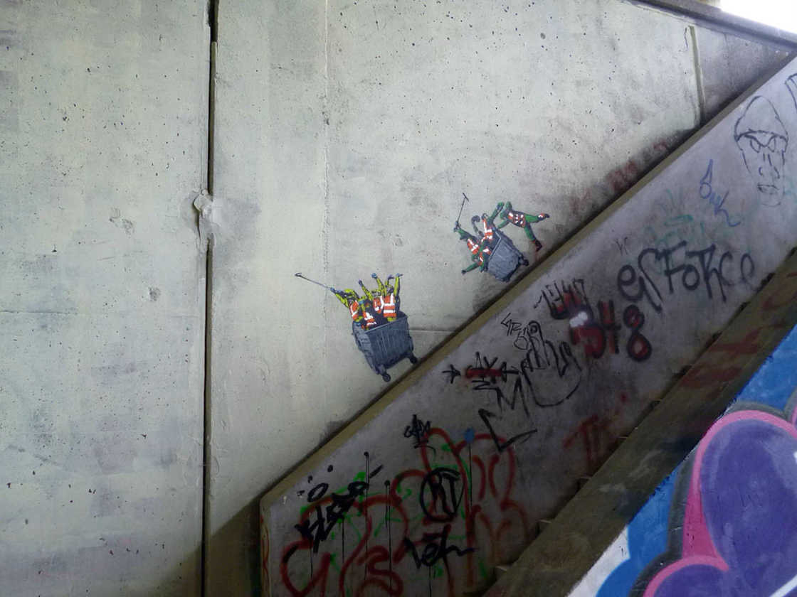 Le street-artiste Jaune (Jonathan Pauwels  de son vrai nom) a choisi sa cible. Avec autant de tendresse que d’humour, il joue avec le quotidien fantasque des employés de la DDE, les agents des services techniques qui gèrent l’entretien de nos villes. Penchez-vous car son travail est de petite taille et il place ses scénettes discrètement.