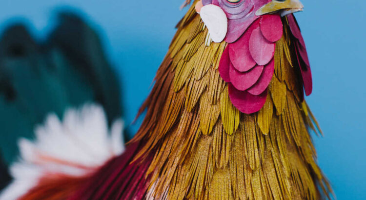 Quel talent et quelle patience faut-il pour créer ce majestueux coq en papier ! Regardez la finesse du plumage et celle du regard... C'est impressionnant !