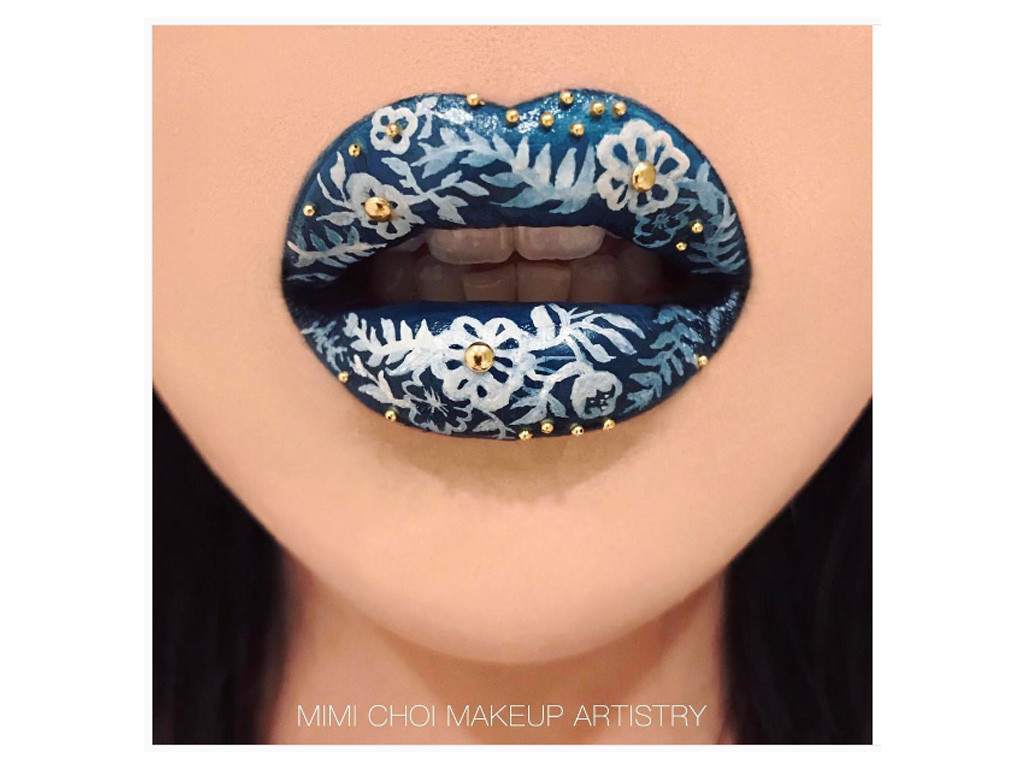 L’artiste canadienne Mimi Choi s’est fait connaître pour ses maquillages de visages déstructurés. Ici elle s’est inspirée des motifs floraux que l’on retrouve sur les porcelaines orientales pour créer ce dessin délicat.