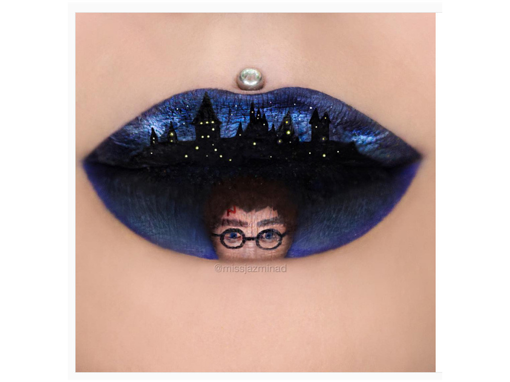 Les lèvres peintes par Jazmina Daniel aiment à nous raconter des histoires. Si elle apprécie les contes de fées et les mondes de Disney, elle explore aussi les univers magiques, comme ici avec Harry Potter.
