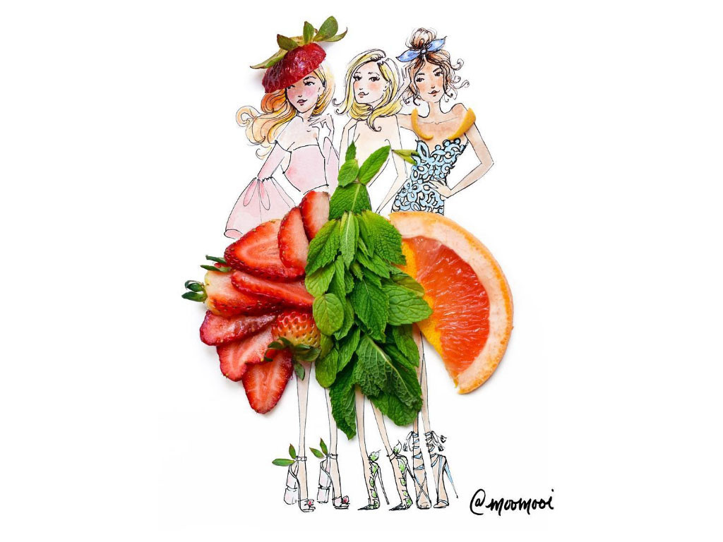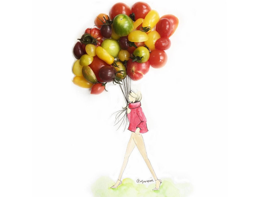 La singularité de son travail l’a vite fait repérer. Ses illustrations qui utilisent des fraises, des pétales de fleurs, des haricots, des grains de café, des bouts de fruit en tout genre ont parlé pour elle. Désormais,