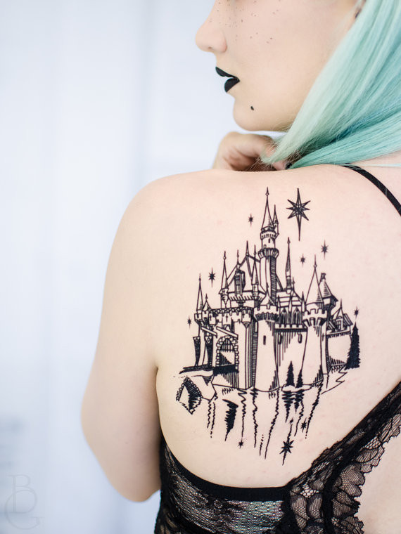 Tatouage spécial princesse de conte de fées... Un magnifique château à coller sur son épaule ou au creux des reins. Nul ne dit si le tatouage est livré par le prince charmant... Boutique Etsy 11€44
