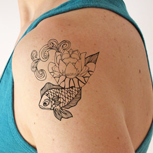 Animal emblématique du Japon, cette carpe koi naviguera avec grâce sur vos jambes, vos bras, votre dos...