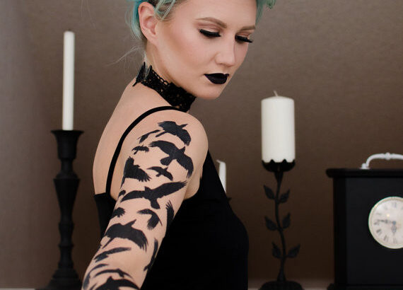 Élégant et mystérieux, ce tattoo attirera les regards ! Une envolée de corbeaux sur tout le bras, voilà qui ravivera facilement les petites robes noires intemporelles...