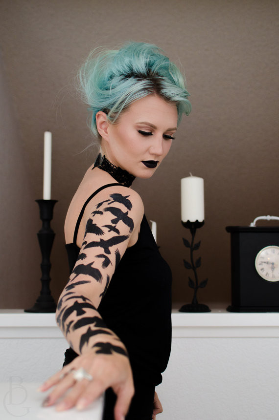 Élégant et mystérieux, ce tattoo attirera les regards ! Une envolée de corbeaux sur tout le bras, voilà qui ravivera facilement les petites robes noires intemporelles... Boutique Etsy 31€46