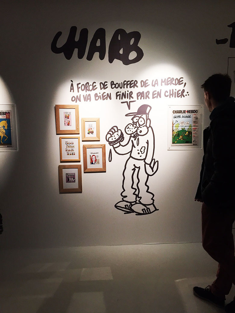 Une exposition montée en deux semaines pour relater l'histoire de Charlie Hebdo, des débuts d'Hara Kiri jusqu'à la dernière Une du 7 janvier.
